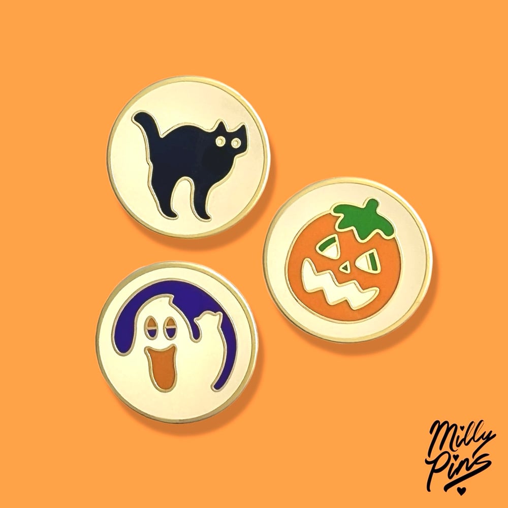 Nostalgic Halloween Cookie Pins – Black Cat, Ghost & Pumpkin – Spooky Cute Gold Enamel Pin
